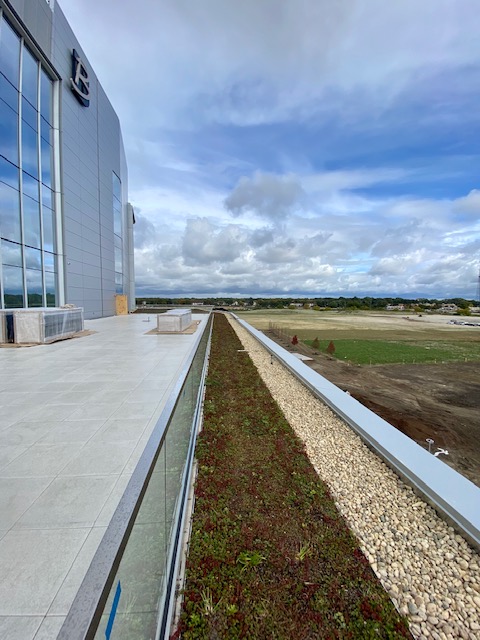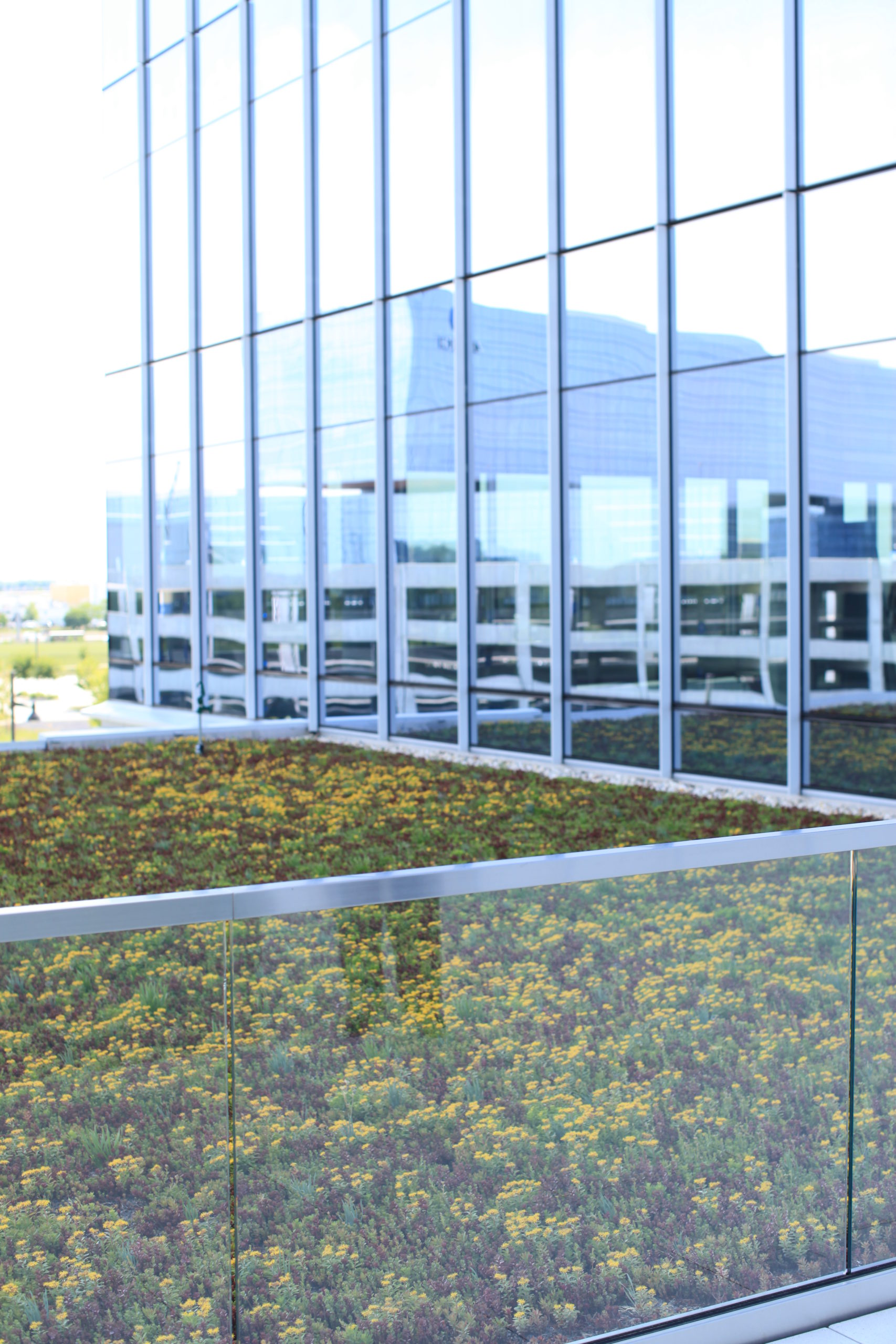 This mixed-use development is in the city’s increasingly popular Bridge Street neighborhood. Below and next to the upscale apartments is Meijer’s new neighborhood-style grocery store which brings fresh products to the urban location. Green roofs are featured on the second levels on the north and south sides, on the fifth level, and over the canopy in front of the Meijer entrance.