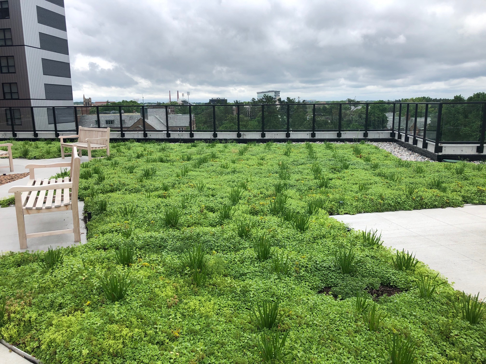 Pictures showing different view points of the LiveRoof system. These photos were taken day after installation.