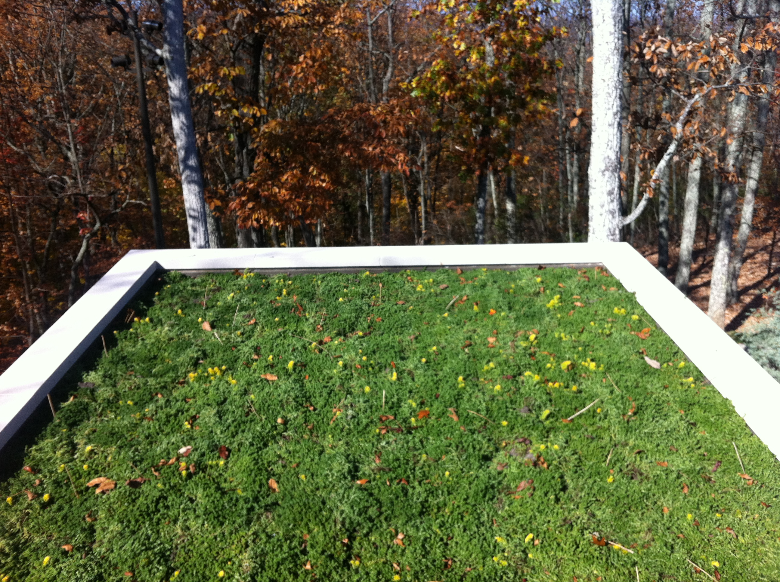 This small LiveRoof project covers the pool house mechanical equipment and provides pleasant views from the adjoining patio and gardens.