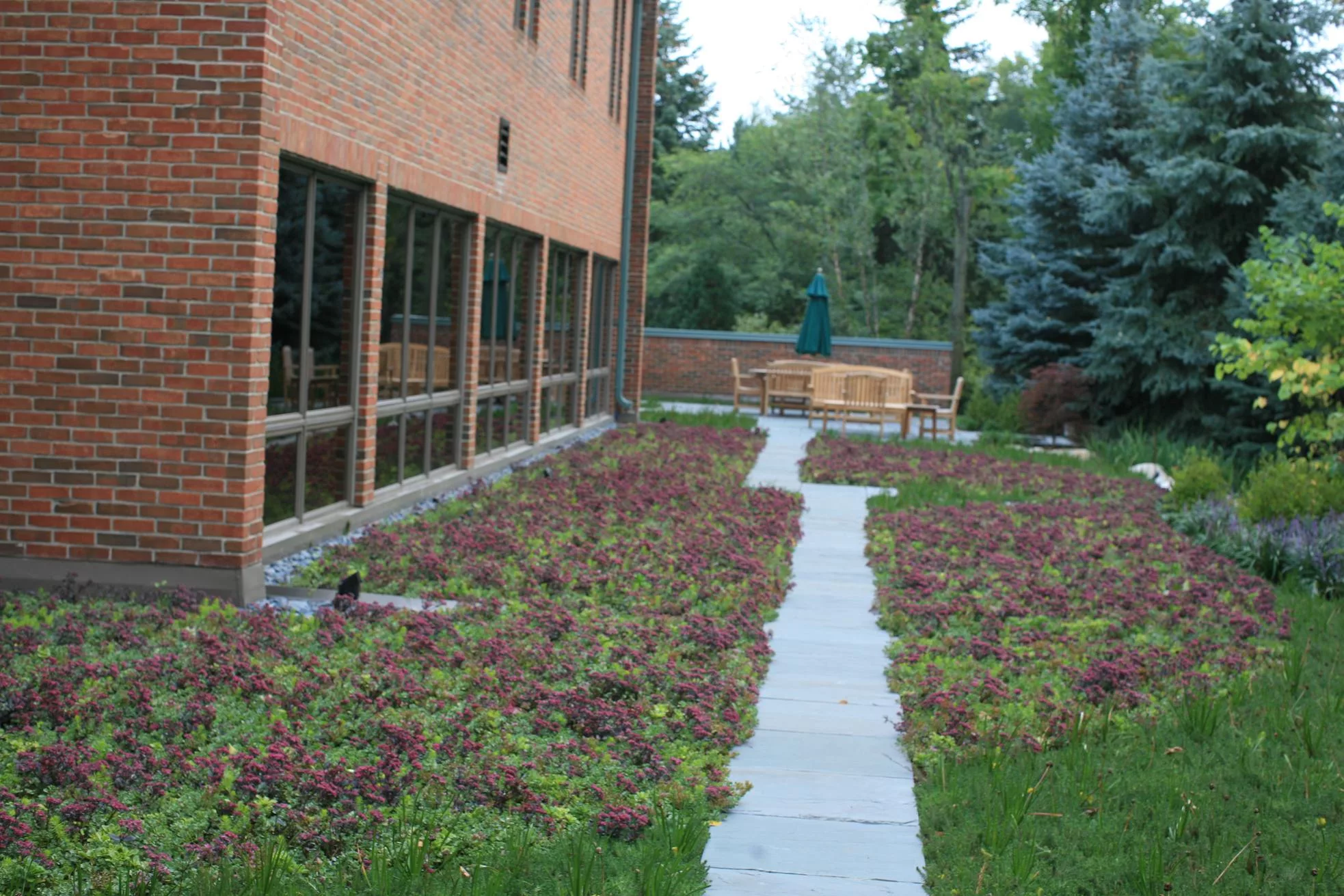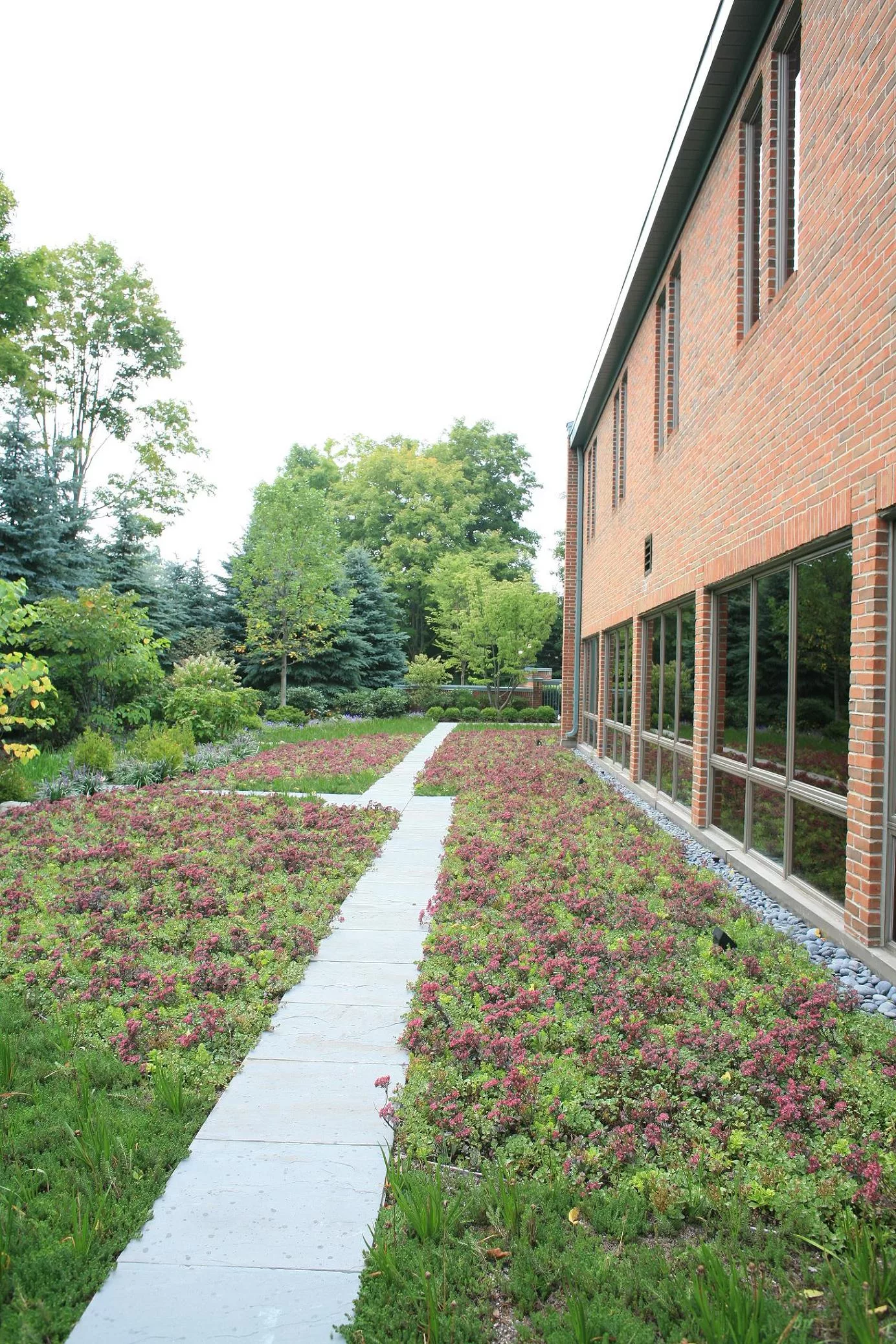 LiveRoof at ground level of the Detroit Suburb Office Building. This system is on top of an underground parking structure.