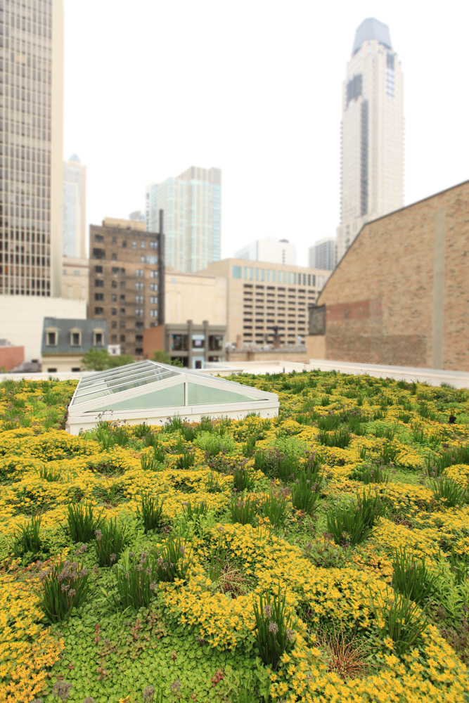 Hues of green and yellow work to create an eye catching display on this vegetated roof.