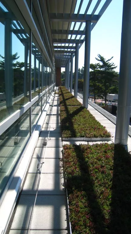 This green roof retrofit on the nursery office and lunch room covers nearly 3,000 square feet. The vegetated roof is made up of a mix of sedums.