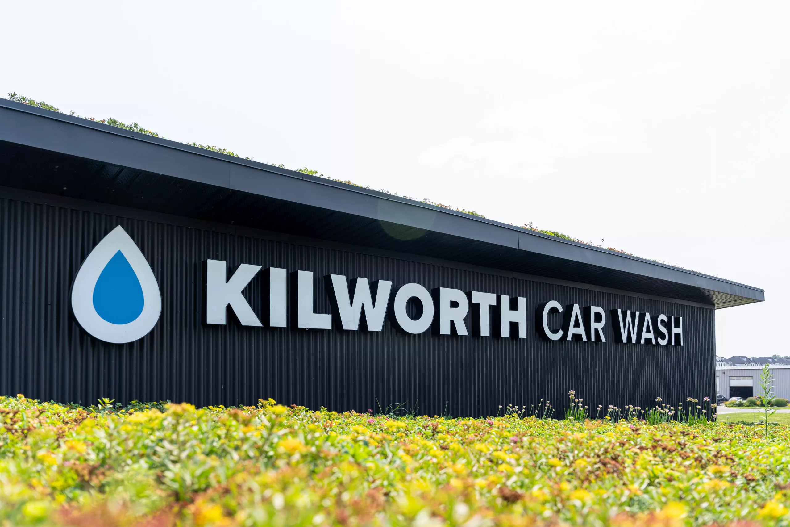 Steve and Lisa Hebb set out to create the greenest car wash in Ontario when they started their new business in Kilworth, On, an upscale bedroom community of London. One of the goals was to reduce the environmental footprint of the building as much as possible. In addition to using the most technically advanced water reclamation system for the wash water, they also decided to deal with stormwater on the building. They elected to put green roofs on the three lightly sloped roofs of the building to take advantage of the benefits of the green roofs. The sloped roofs make the green roofs really stand, even for those speeding by.
