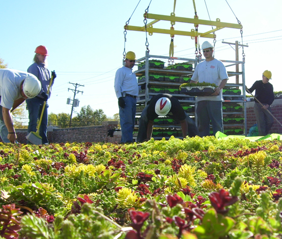 LiveRoof system installed on top of a pool house at a residence in Middletown.
