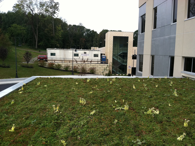 Living roofs create an oasis of vegetation to urban environments. These patches of vegetation can prove to be critical for migratory birds. Providing a haven for these types of birds reduces the disruption our built environment has on their flight patterns. In addition to providing respite for migratory birds, green roofs create a home for various pollinators, as well. These pollinators serve as the backbone of a healthy ecosystem.