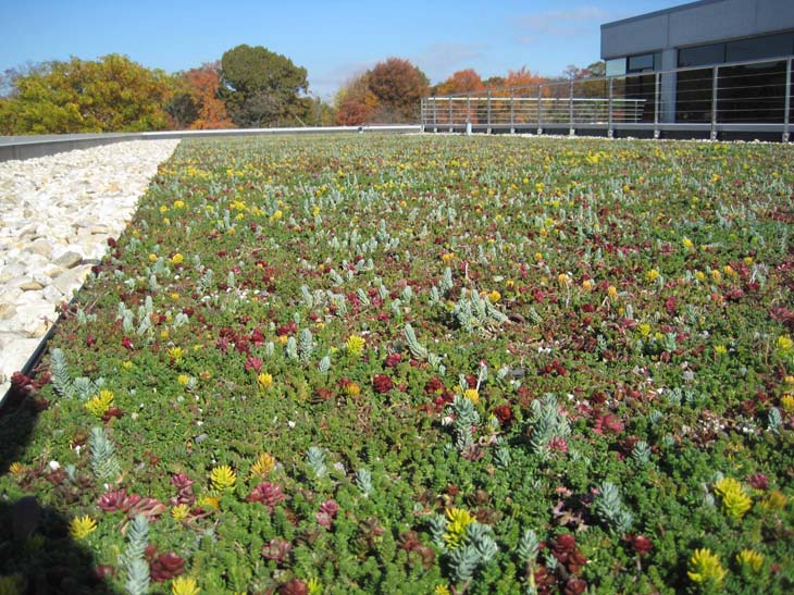 This LiveRoof wraps around the window level of the building allowing for a larger system to be installed and still keep the roof functional.