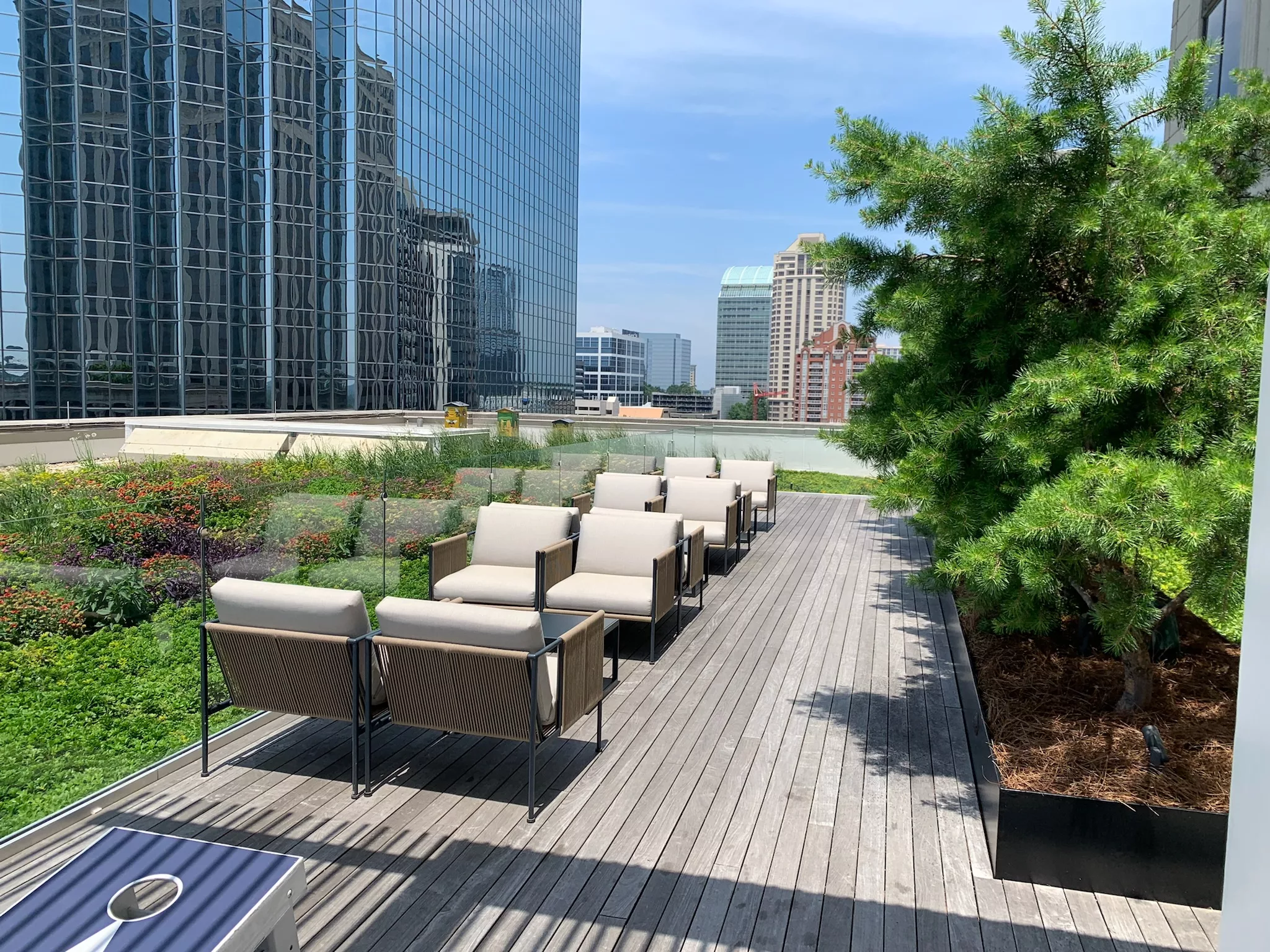 Resurgens Plaza is an office building in Buckhead, GA that features a lush LiveRoof on the 14th floor. This roof is designed to replicate a natural, hilly landscape, making it unique from any of our other projects. Accompanying this roof are three Bee Downtown apiaries, housing honey bees that pollinate the green roof’s flowers alongside many other species of insects. This roof serves as both a gorgeous outdoor common area and as a mechanism for habitat restoration where native species can thrive.