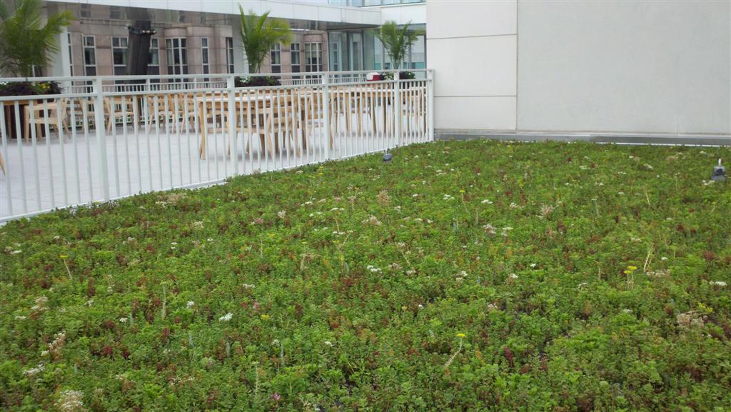 This Montessori in Illinois is home to a LiveRoof green roof that features a mix of sedums and also has a area for growing vegetables.