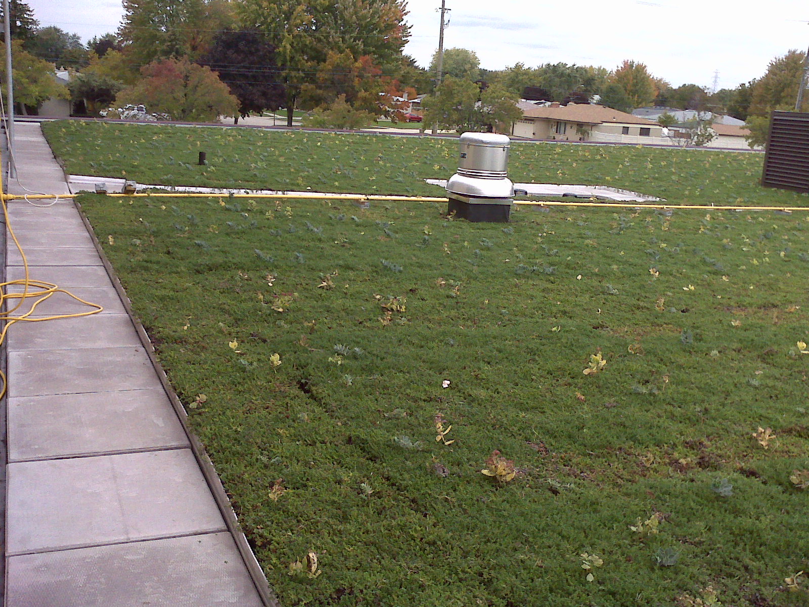 Second green roof for the City of London. Clearly visible from all surrounding areas because of the 22 degree slope. The vegetative roof covers 1,750 square feet.