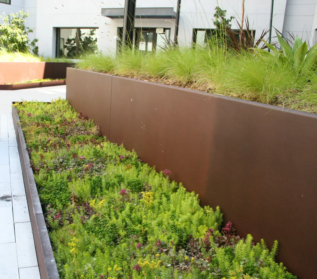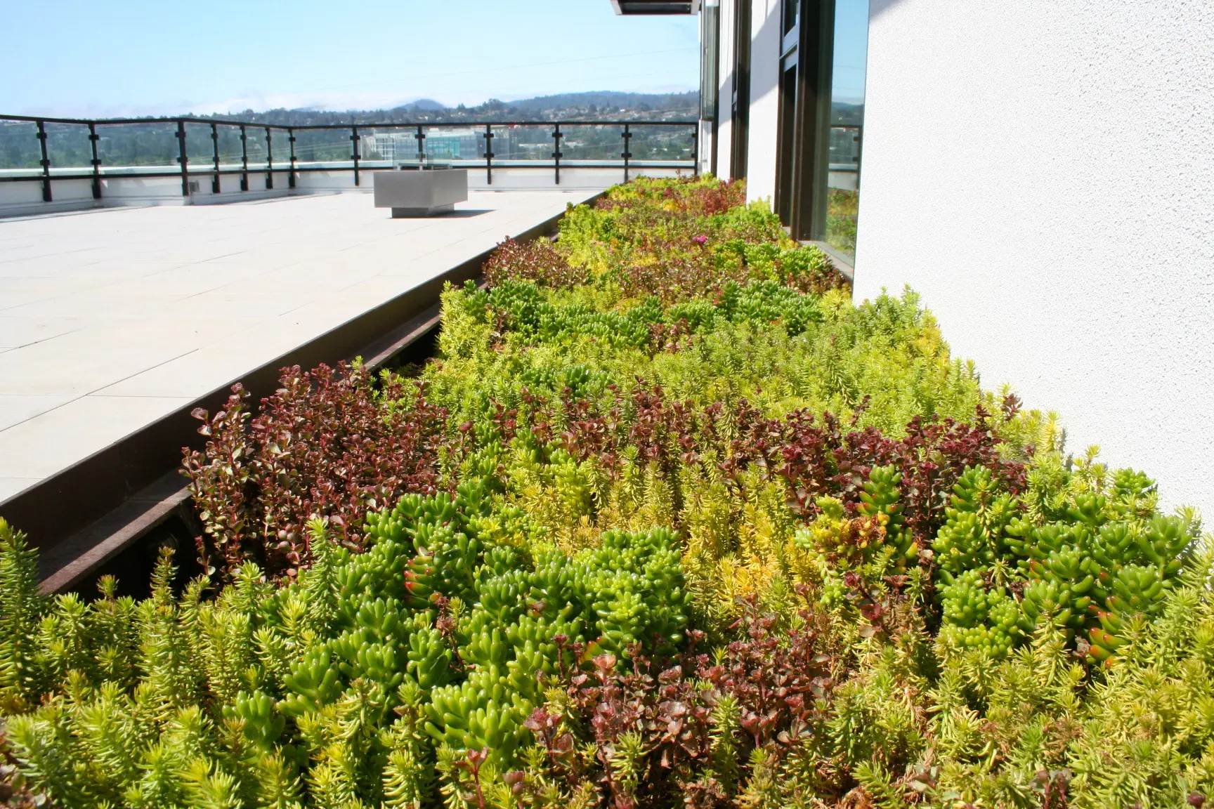 The green roofs consist primarily of biodiverse plantings using Southern Ontario natives. the plant design is such that there is something in flower on every level from mid spring right till freeze up.