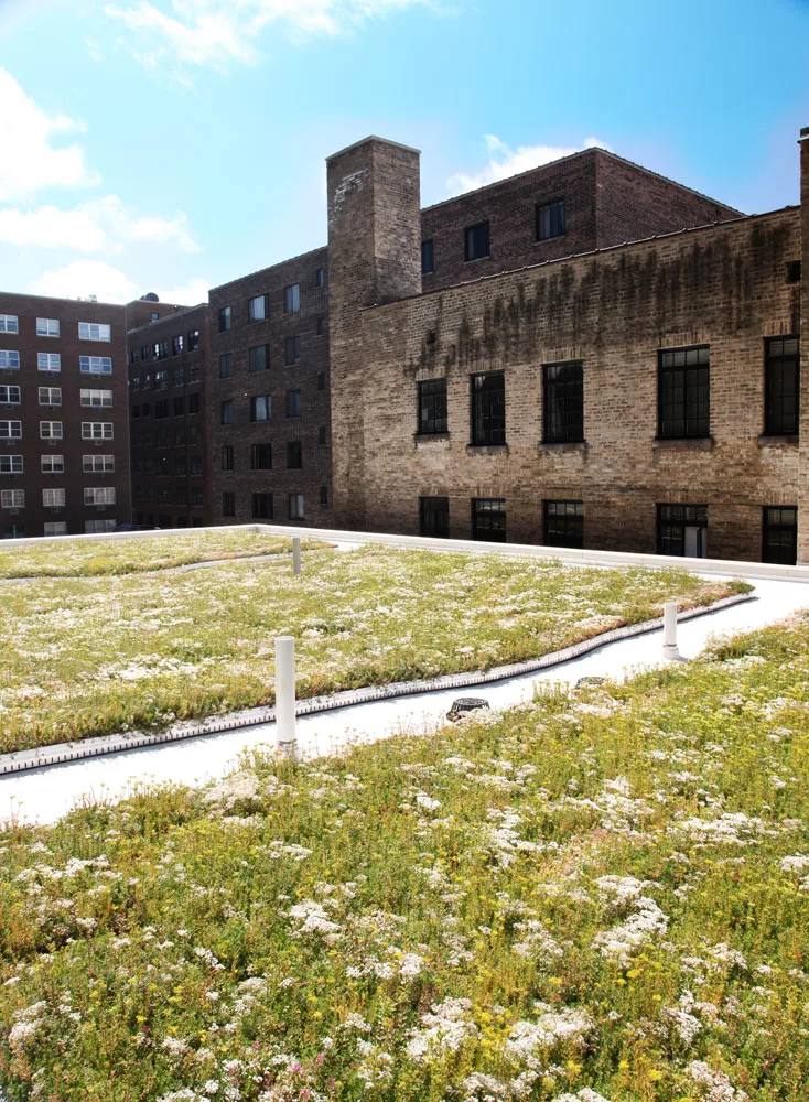 The green roof at 1001 South State helps to manage stormwater runoff.