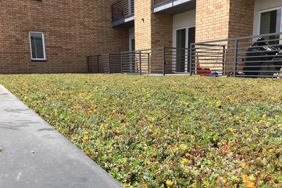 Higher Ground Roofing installed a LiveRoof at 1603 Monroe in Madison, WI. This LiveRoof has a custom mix and roof edging.