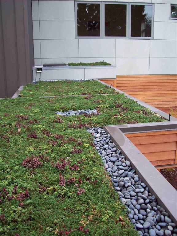 Duo West Development installation of LiveRoof system with stones on two different levels of the roof