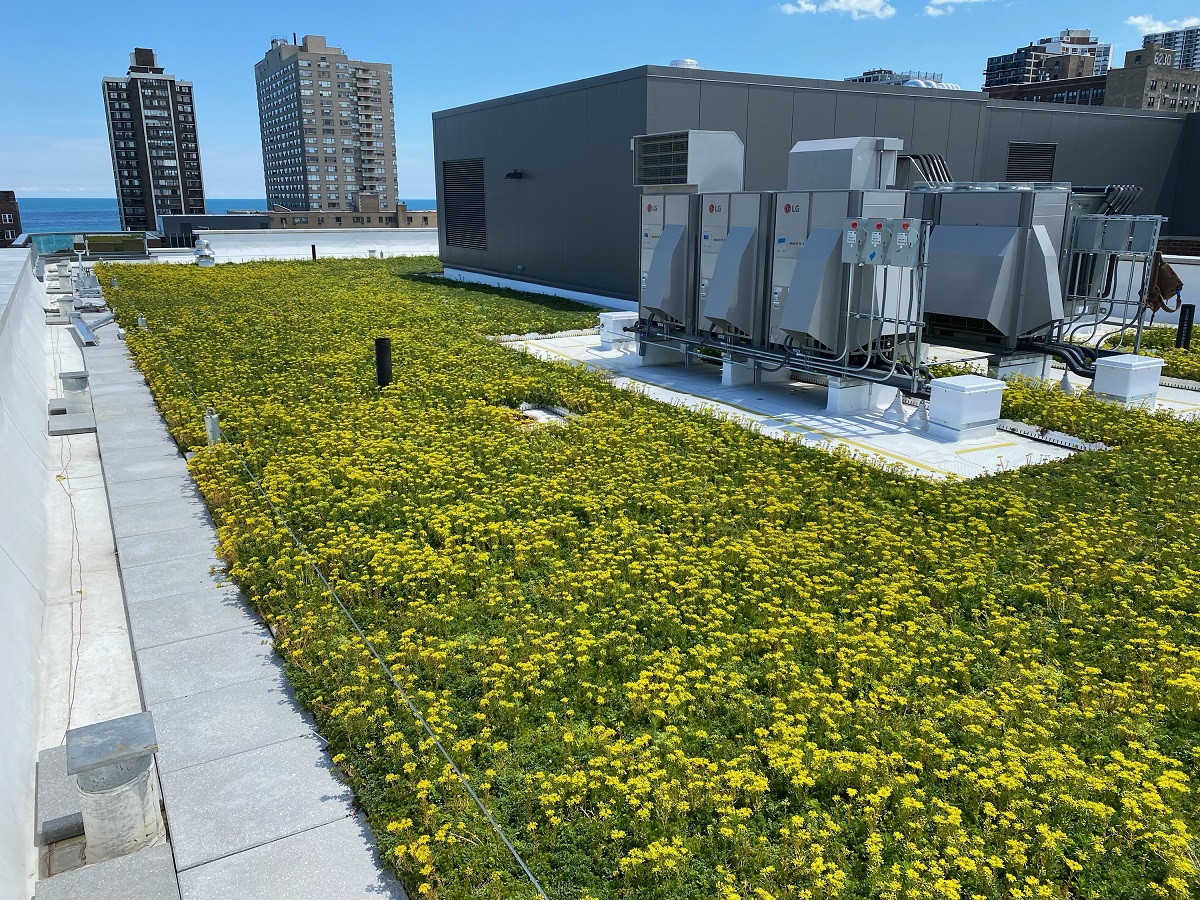 The Haworth office in Holland, Michigan is a very unique green roof, featuring a slope that connects the building to the ground. This green roof looks great in every season.