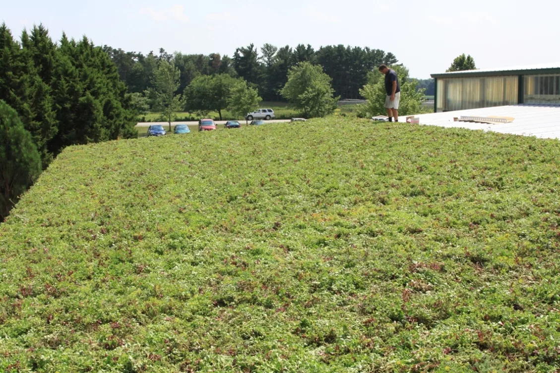 This green roof retrofit on the nursery office and lunch room covers nearly 3,000 square feet. The vegetated roof is made up of a mix of sedums.