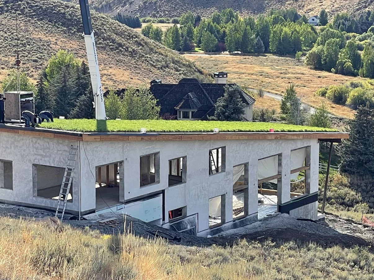A new construction, private residence in Ketchum, ID utilizing the 6-inch LiveRoof Deep system for grasses.