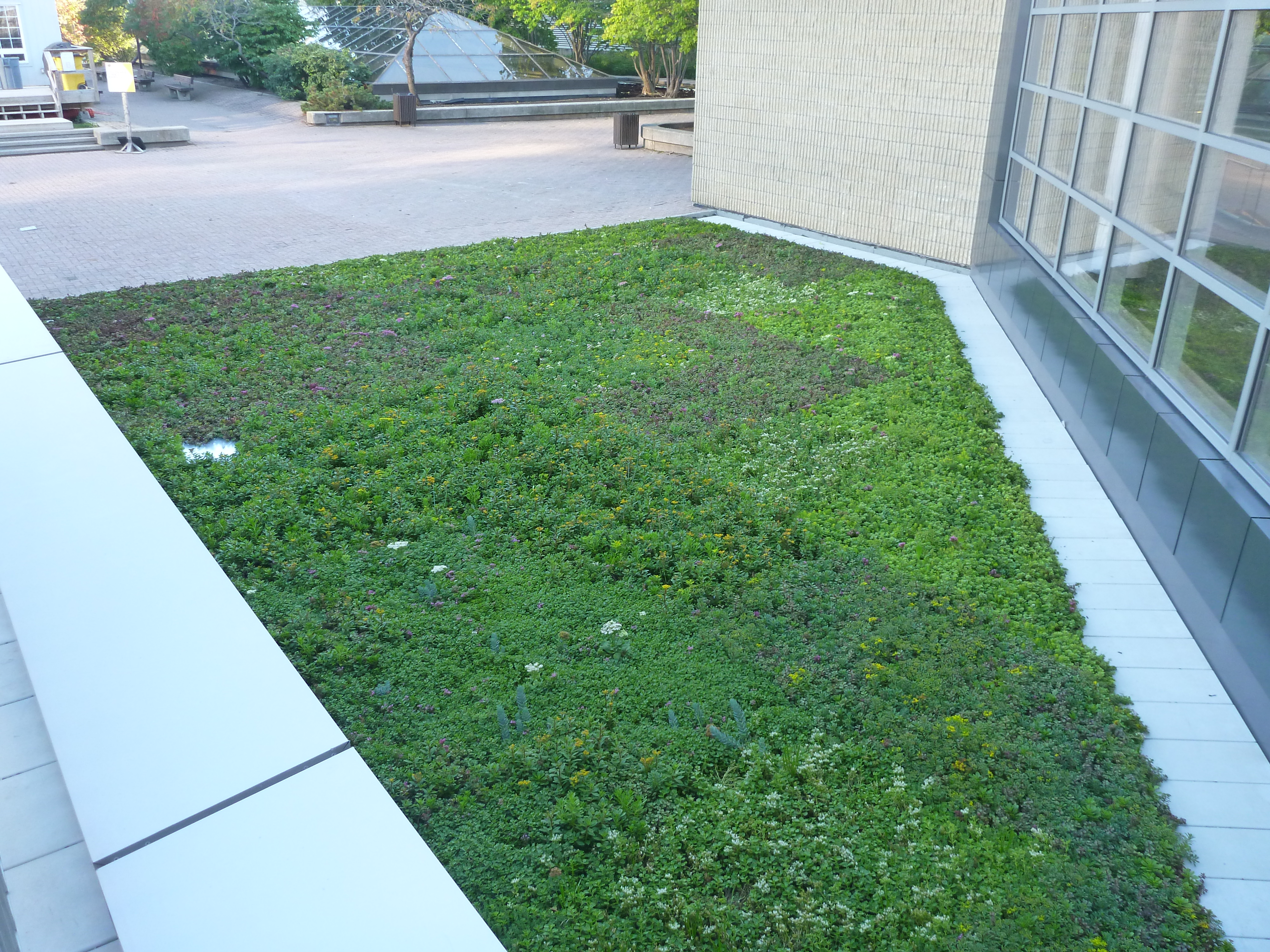 The green roof was added when the 4 th floor shopping area was expanded with a new La Maison Simons clothing store. It is an addition to the rooftop garden that has existed on the Rideau Centre since 1983.