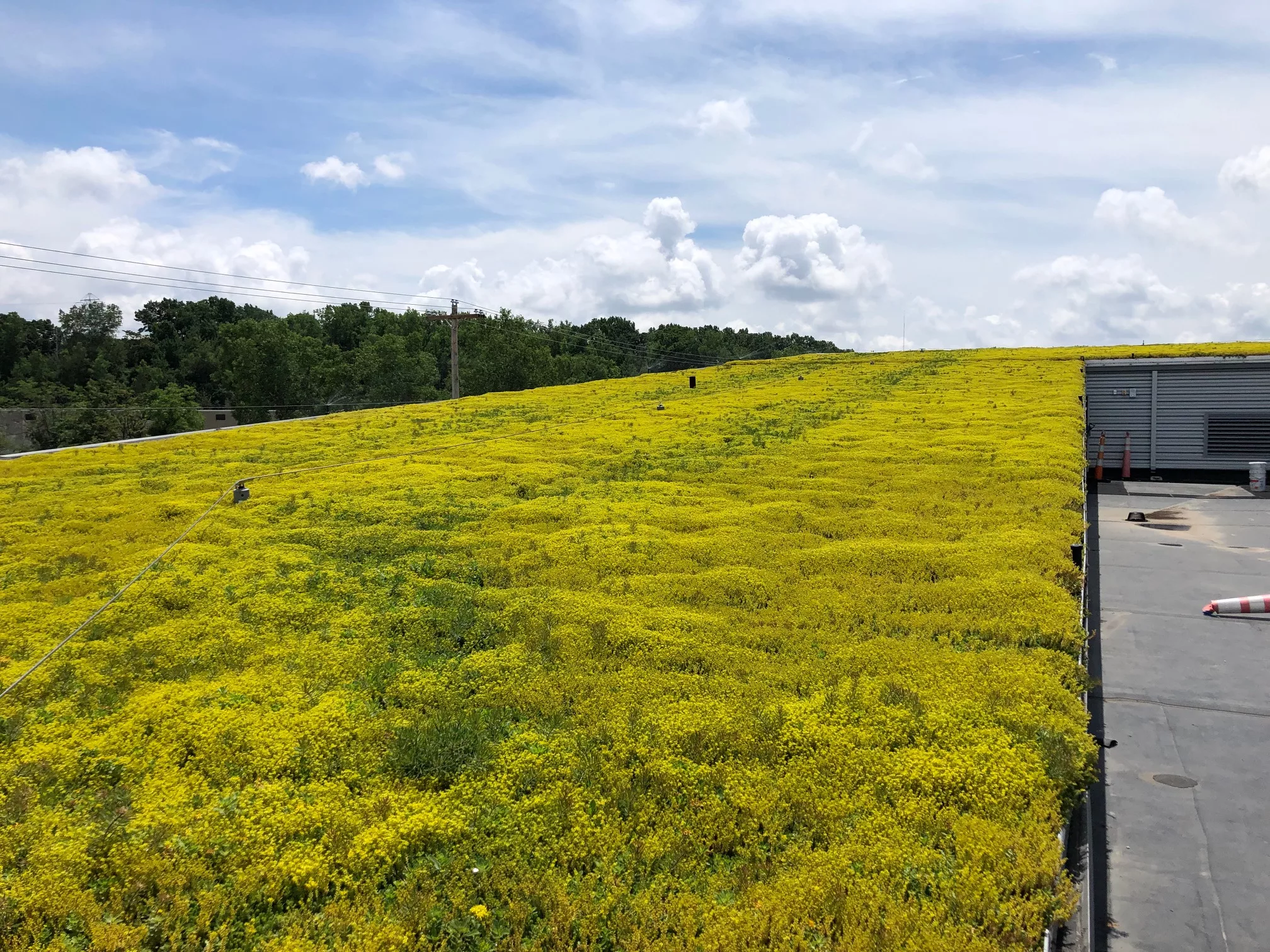 A sea of yellow spans the green roof at The Rapid’s Laker Line facility.